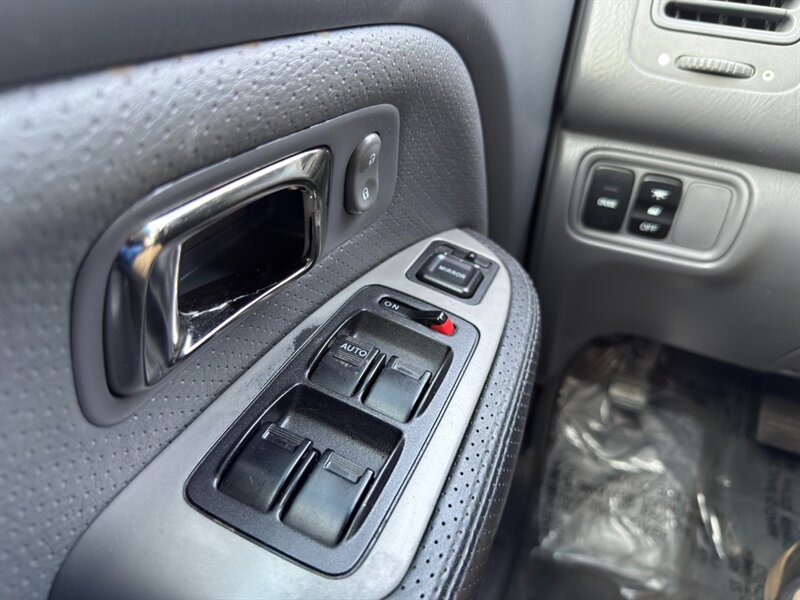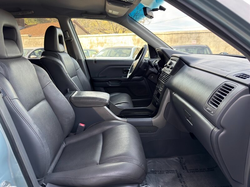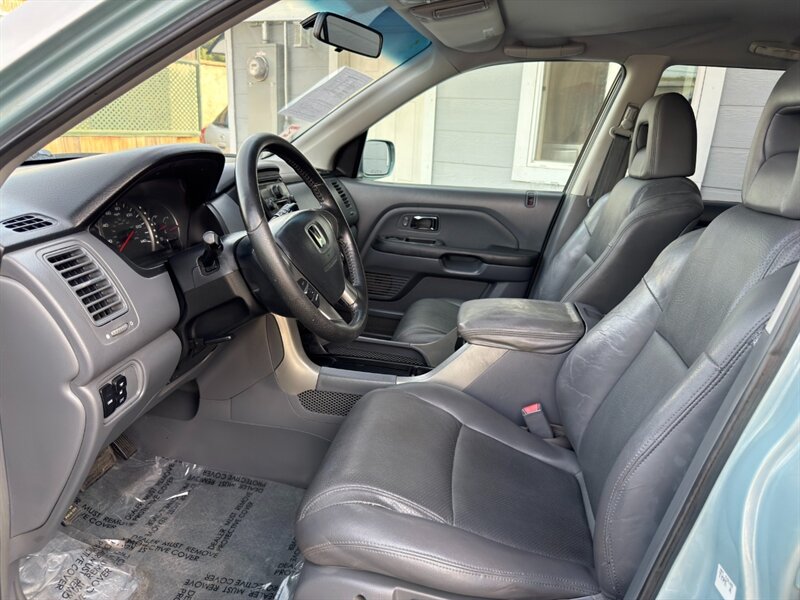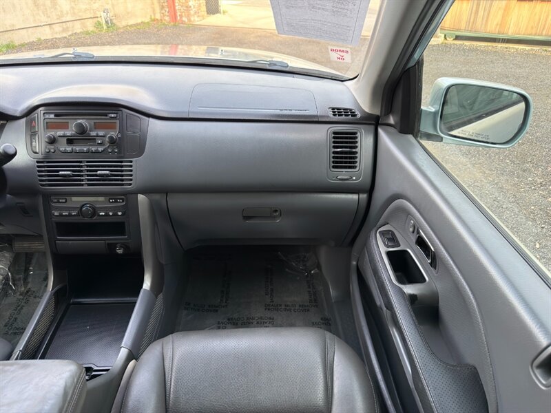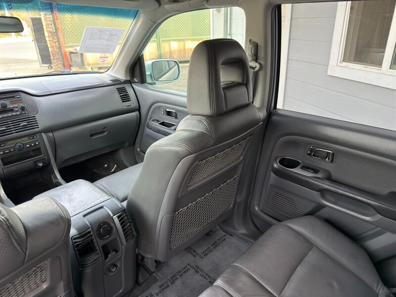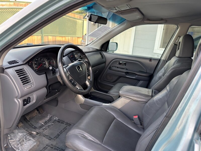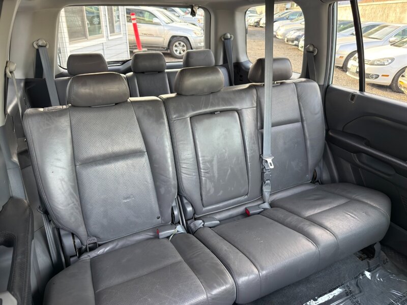 2003 Honda Pilot EX-L con motor V6 de 3.0 L aspirado (SOHC, 24 válvulas) acoplado a transmisión automática. El equipamiento de fábrica incluye asientos tapizados en cuero con asiento del conductor de ajuste eléctrico y asientos delanteros calefactables, tres filas de asientos para hasta siete pasajeros, elevalunas/cerraduras/espejos eléctricos, entrada remota sin llave, control de crucero, columna de dirección inclinable, climatizador automático, radio AM/FM con reproductor de CD, llantas de aleación y barras de techo, además de frenos ABS y múltiples airbags. Exterior: Starlight Silver Metallic; interior: Fern. Consumo aproximado 15 MPG ciudad / 21 MPG carretera. Vehículo en excelente estado general.