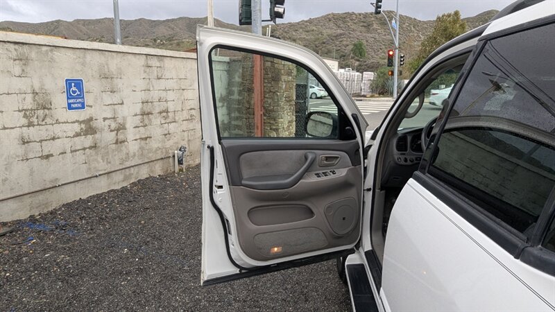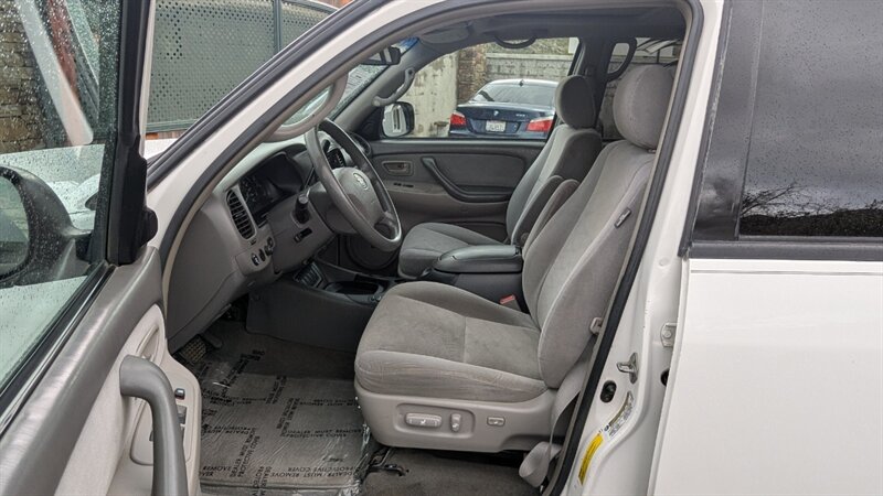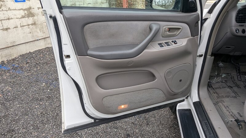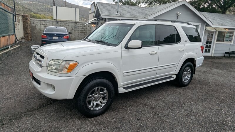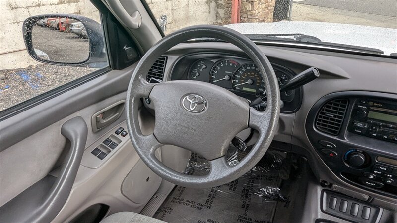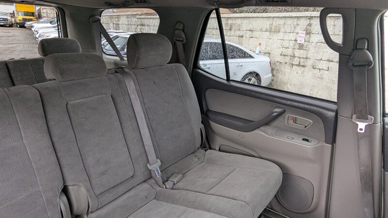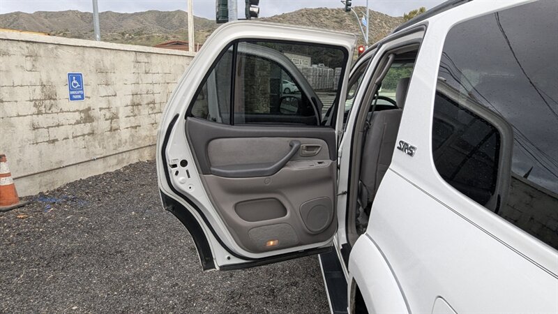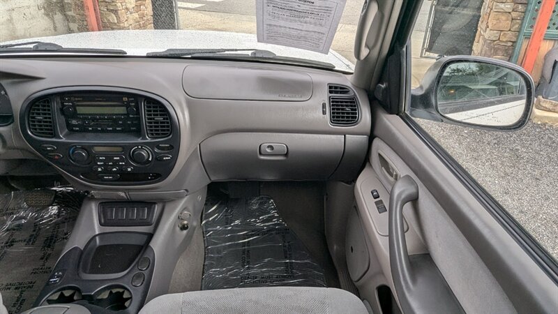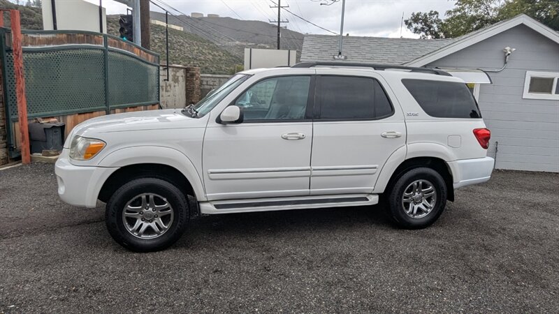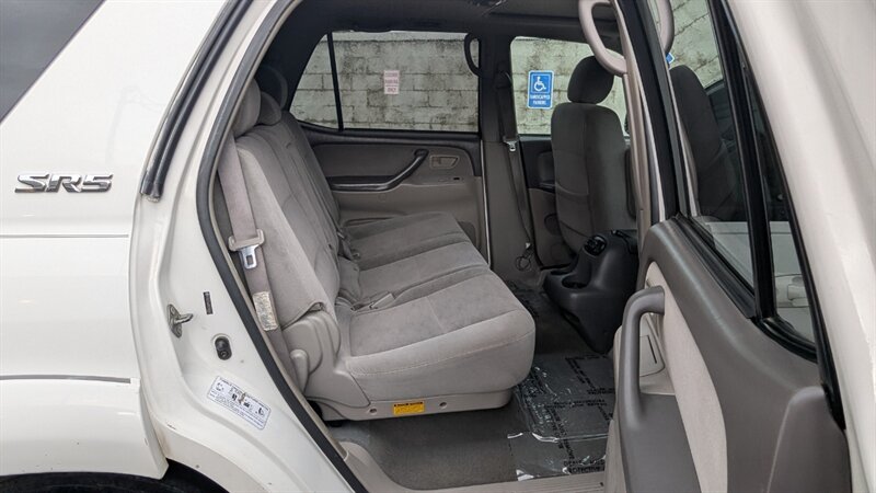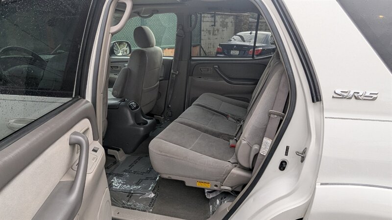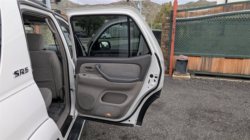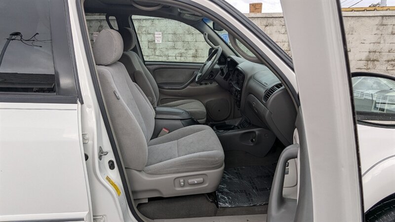 The 2005 Toyota Sequoia SR5 is a robust SUV equipped with a powerful 4.7L V8 engine delivering 282 horsepower and 325 ft-lbs of torque. This model features a Natural White exterior and a Light Charcoal interior, offering a classic yet modern look. Factory default features include a spacious interior with seating for up to eight passengers, power windows and locks, a premium audio system, and air conditioning for comfort on every journey. With a fuel efficiency of 14 MPG in the city and 17 MPG on the highway, this vehicle strikes a balance between power and practicality. Overall, this Sequoia is in excellent condition, ready for new adventures. this vehicle true mileage are unknown.