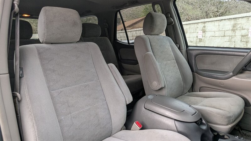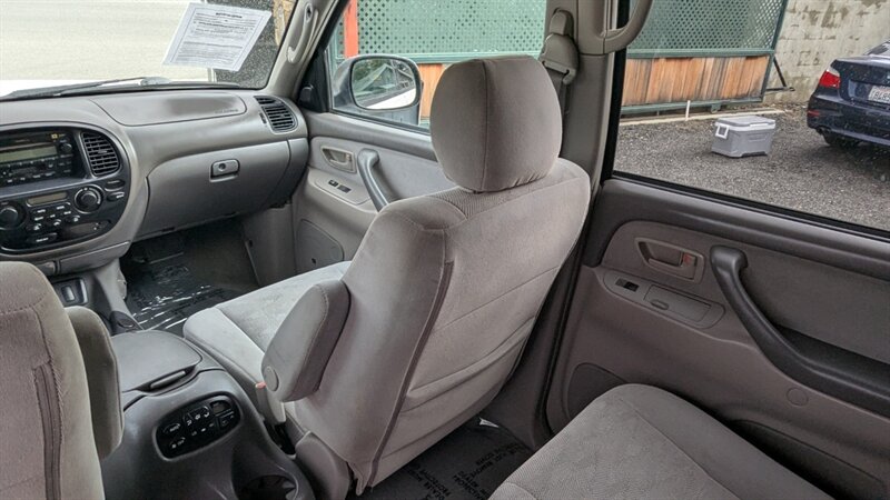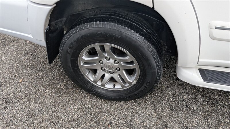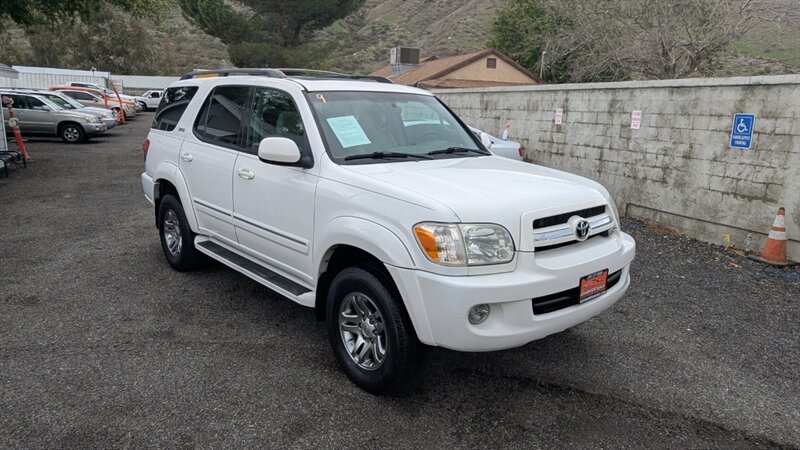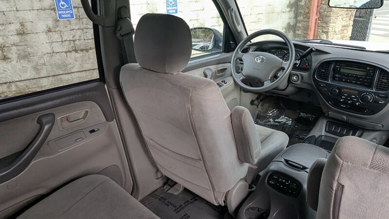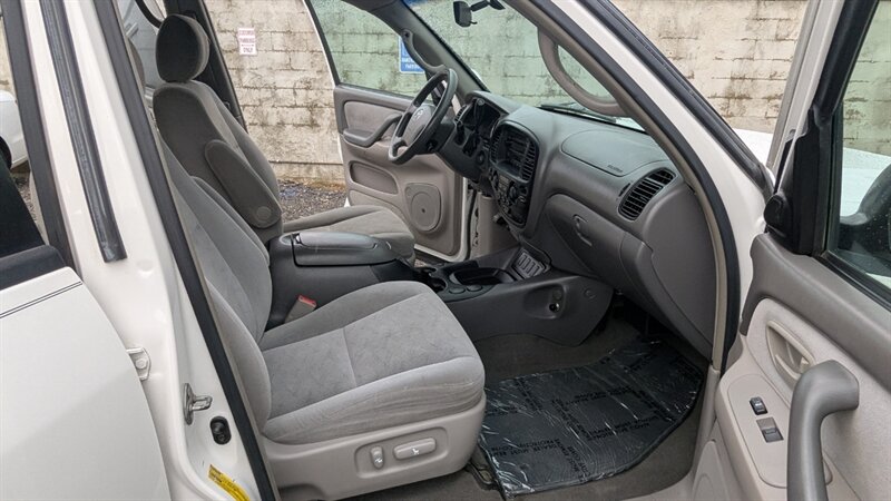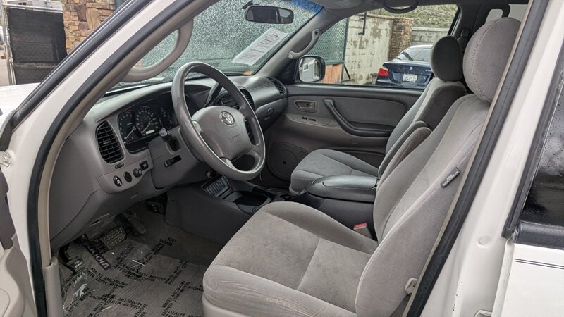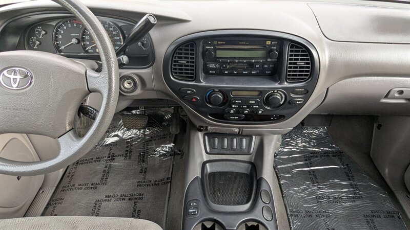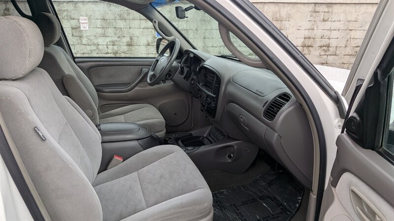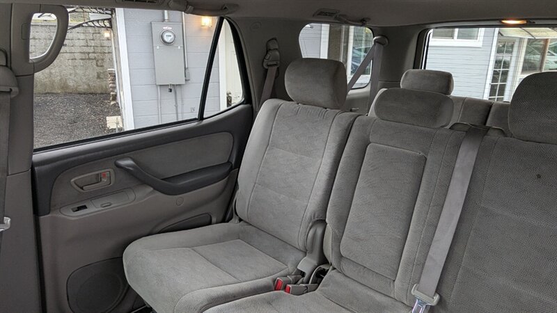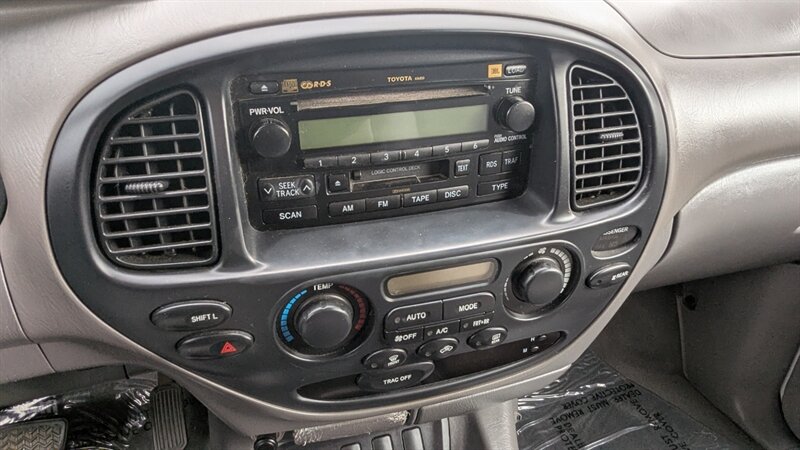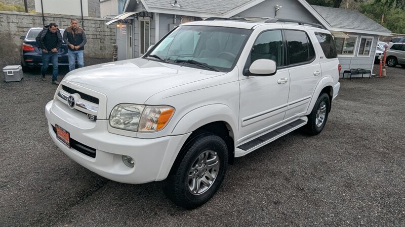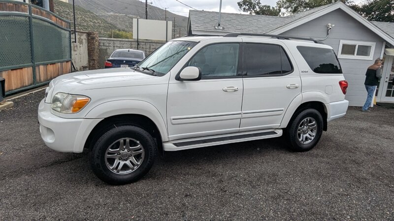 The 2005 Toyota Sequoia SR5 is a robust SUV equipped with a powerful 4.7L V8 engine delivering 282 horsepower and 325 ft-lbs of torque. This model features a Natural White exterior and a Light Charcoal interior, offering a classic yet modern look. Factory default features include a spacious interior with seating for up to eight passengers, power windows and locks, a premium audio system, and air conditioning for comfort on every journey. With a fuel efficiency of 14 MPG in the city and 17 MPG on the highway, this vehicle strikes a balance between power and practicality. Overall, this Sequoia is in excellent condition, ready for new adventures. this vehicle true mileage are unknown.