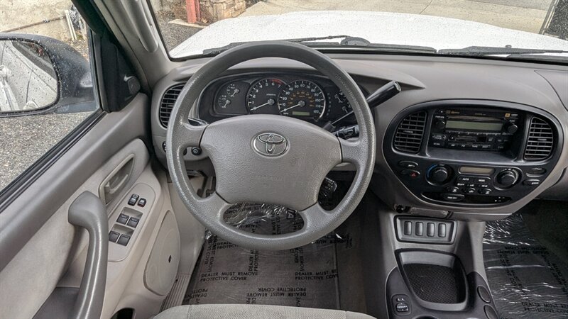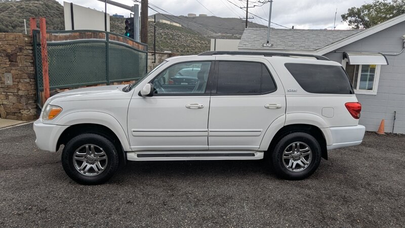 La Toyota Sequoia SR5 2005 es un SUV robusto equipado con un potente motor V8 de 4.7L que ofrece 282 caballos de fuerza y 325 pies-libra de torque. Este modelo cuenta con un exterior en Blanco Natural y un interior en Charcoal Claro, brindando un aspecto clásico y moderno. Las caracterÃsticas de fábrica incluyen un interior espacioso con capacidad para hasta ocho pasajeros, ventanas y cerraduras eléctricas, un sistema de audio premium y aire acondicionado para mayor comodidad en cada viaje. Con una eficiencia de combustible de 14 MPG en la ciudad y 17 MPG en la carretera, este vehÃculo combina potencia y practicidad. En general, esta Sequoia se encuentra en excelente estado, lista para nuevas aventuras. este carro milas exactas son desconocidas