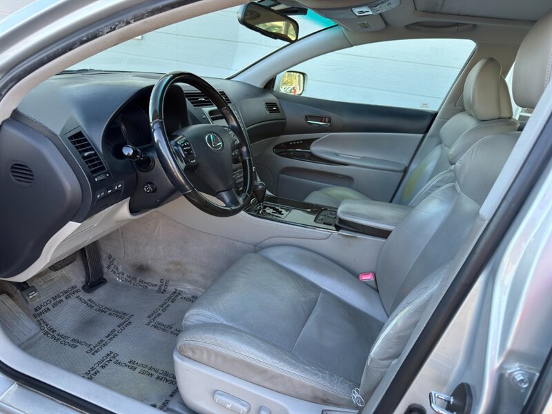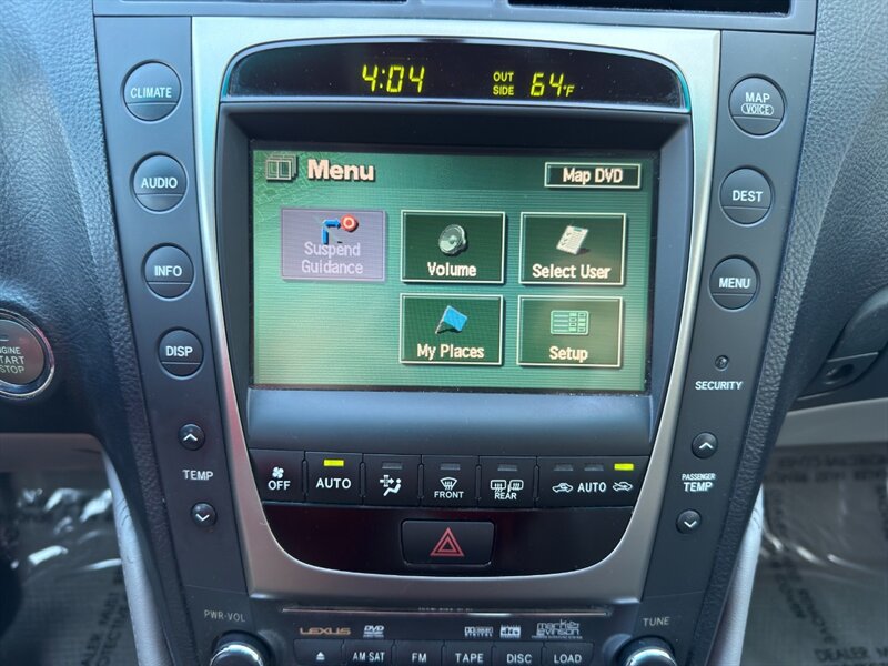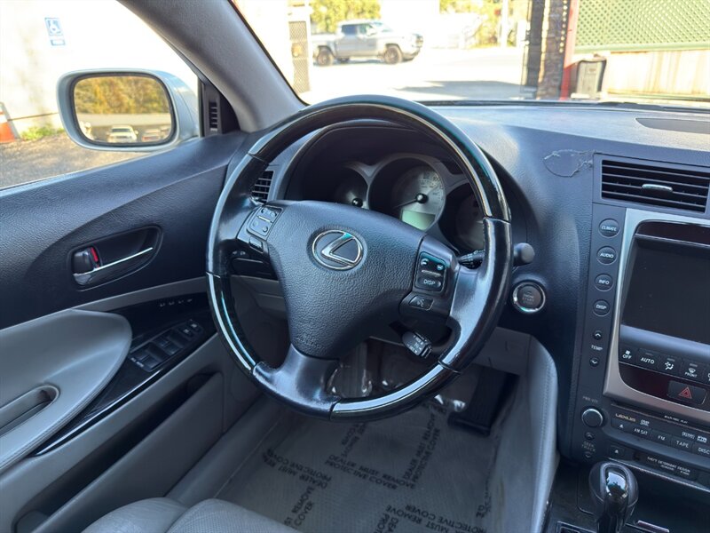 2006 Lexus GS 300 — Exterior plateado, interior en cuero Cashmere. Motor 3.0L aspirado V6 (DOHC, 24 válvulas) con transmisión automática de 5 velocidades y tracción trasera. Equipamiento de fábrica: asientos de cuero con ajuste eléctrico y memoria para el conductor, climatizador automático de dos zonas, elevalunas y cerraduras eléctricas, espejos y volante con ajuste, controles de audio en el volante, sistema de audio premium con CD, llantas de aleación y faros antiniebla; seguridad con frenos ABS y distribución electrónica de frenado, control de tracción y control de estabilidad (VSC), airbags frontales, laterales y de cortina, y entrada remota sin llave/inmovilizador. Consumo: 19 MPG en ciudad / 27 MPG en carretera. Vehículo en excelente estado general. millas exactas desconocidas