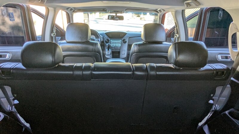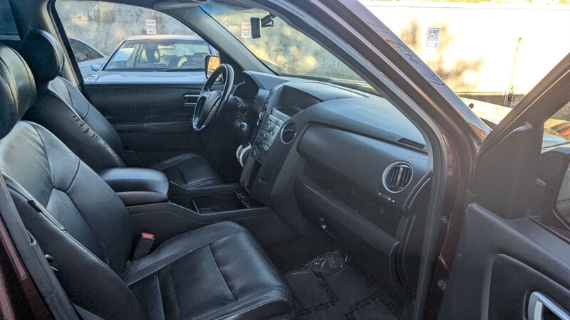 The 2009 Honda Pilot EX-L is a spacious and versatile SUV, perfect for families and adventurous outings. It features a powerful 3.5L V6 engine, delivering 250 horsepower and 253 lb-ft of torque. The exterior is finished in a striking Dark Cherry Pearl, while the interior boasts a comfortable Gray design. This vehicle is equipped with factory default features including leather upholstery, a sunroof, dual-zone climate control, and a premium audio system. It also includes a rearview camera, power-adjustable front seats, and third-row seating for additional passenger capacity. With fuel efficiency ratings of 17 MPG in the city and 23 MPG on the highway, this Honda Pilot offers a blend of power and practicality. This vehicle is in excellent overall condition.