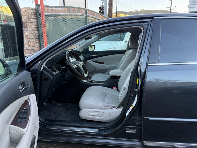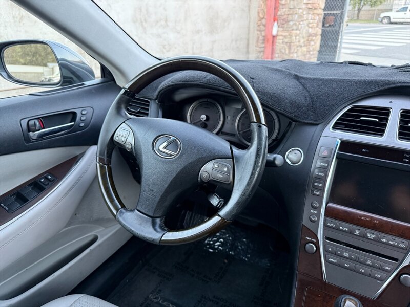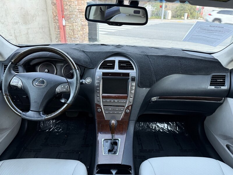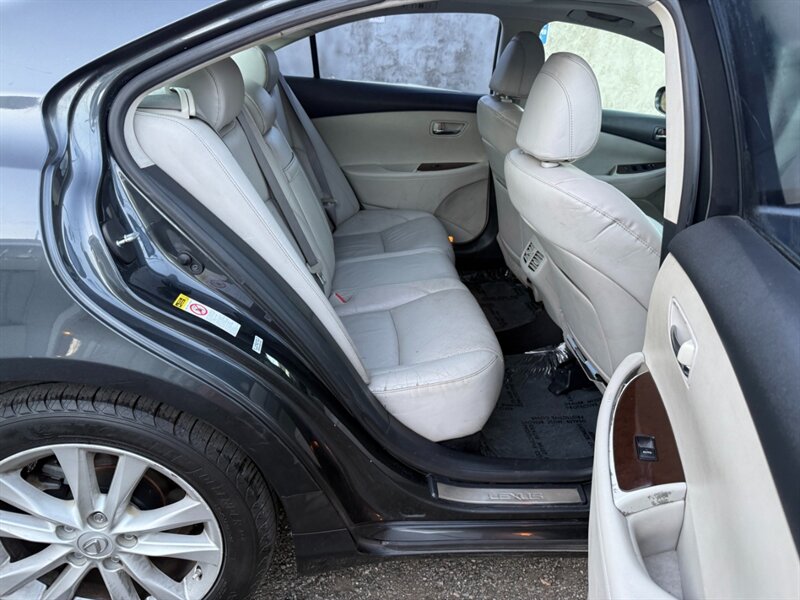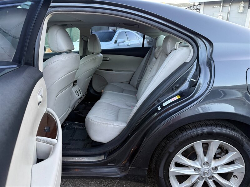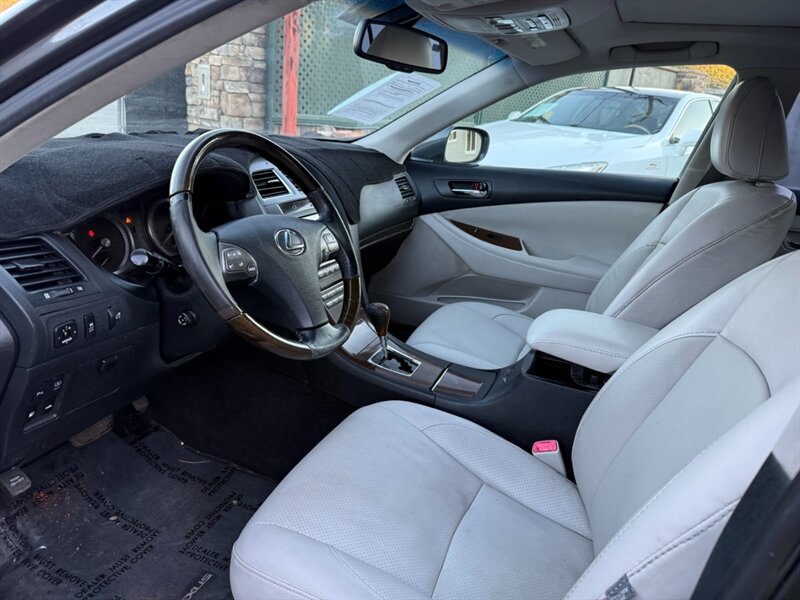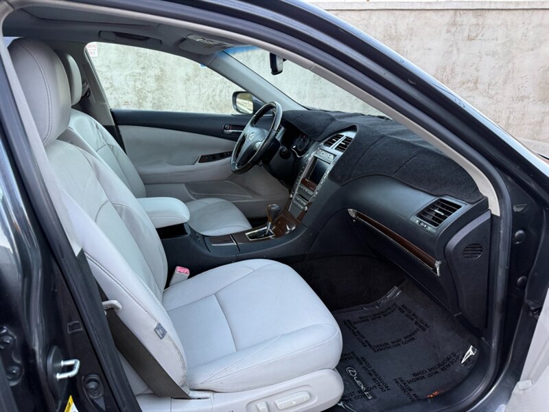 2010 Lexus ES 350 in Smoky Granite Mica with Light Gray interior. Powered by a 3.5L V6 (272 hp, 254 lb-ft) paired with a 6-speed automatic and front-wheel drive; EPA rating 19 MPG city / 27 MPG highway. Factory equipment includes leather-trimmed seating, power-adjustable front seats with driver memory and front seat heaters, dual-zone automatic climate control, wood-trim accents, power windows/locks/mirrors, remote keyless entry and cruise control, AM/FM CD/MP3 audio with auxiliary input and Bluetooth hands-free, alloy wheels, anti-lock brakes (ABS), vehicle stability control, traction control, front and side-impact airbags with full-length side curtain airbags, tire pressure monitoring system and factory anti-theft/immobilizer. Vehicle is in excellent overall condition.