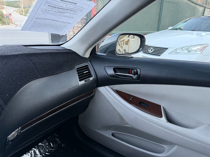 2010 Lexus ES 350 en Smoky Granite Mica con interior en gris claro. Motor 3.5L V6 (272 hp, 254 lb-ft) con transmisión automática de 6 velocidades y tracción delantera; consumo EPA 19 MPG ciudad / 27 MPG carretera. Equipamiento de fábrica: tapicería en cuero, asientos delanteros con ajuste eléctrico, memoria del conductor y calefacción, control automático de clima de doble zona, detalles en madera, ventanas/cerraduras/espejos eléctricos, entrada remota sin llave y control de crucero, equipo de audio AM/FM CD/MP3 con entrada auxiliar y Bluetooth para manos libres, llantas de aleación, frenos ABS, control de estabilidad, control de tracción, airbags frontales y laterales con cortinas laterales de longitud completa, sistema de monitoreo de presión de neumáticos y sistema antirrobo/immobilizador de fábrica. El vehículo se encuentra en excelente condición general.