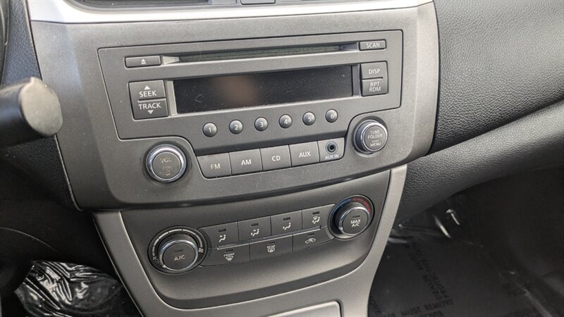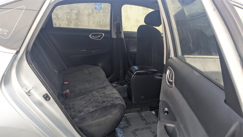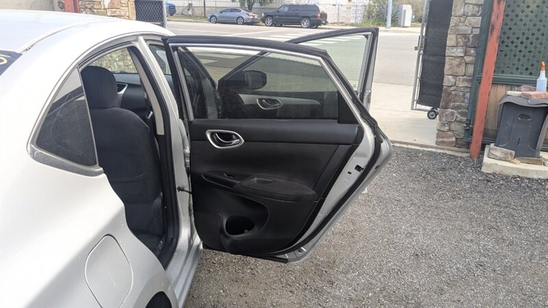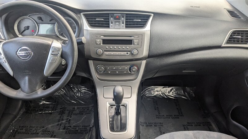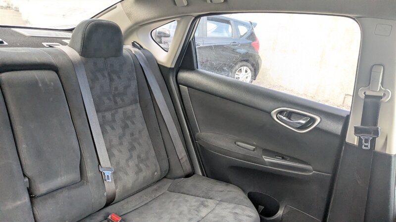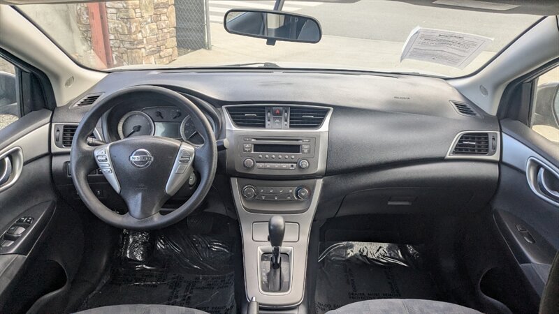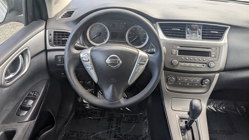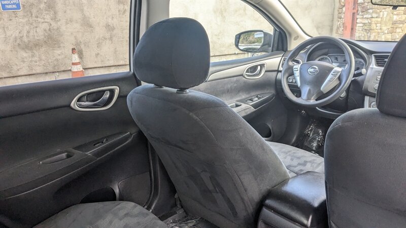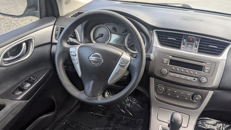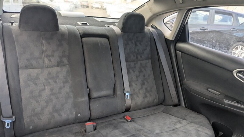 2013 Nissan Sentra S — exterior Black, interior Black. Powered by a 1.8L I4 (130 hp, 128 lb-ft). Factory-standard equipment includes air conditioning, power windows and door locks, remote keyless entry, AM/FM/CD audio with auxiliary input, cloth seats with a 60/40 split-folding rear bench, tilt steering, 15-inch steel wheels with covers, and intermittent wipers. Safety and mechanical features include anti-lock brakes with electronic brake-force distribution, vehicle dynamic control (stability) and traction control, front and side-impact airbags wth roof-mounted curtain airbags, tire pressure monitoring and LATCH child-seat anchors. EPA rating: 27 MPG city / 36 MPG highway. Vehicle is in excellent overall condition.