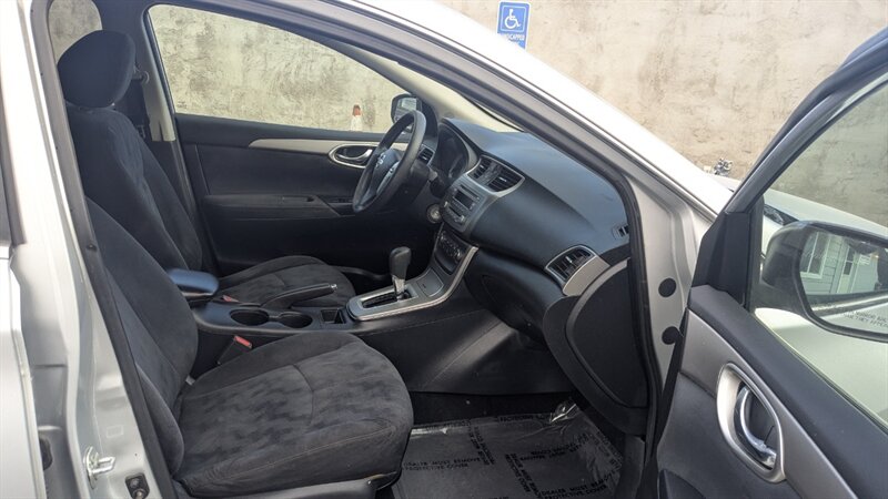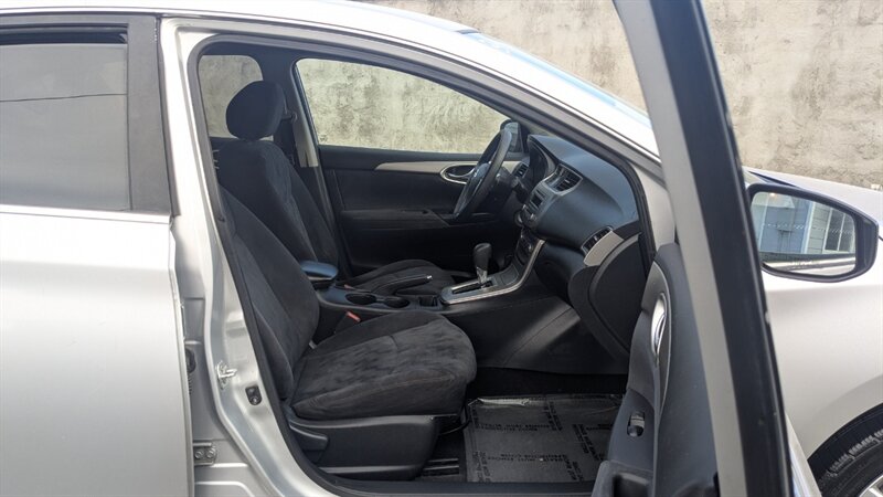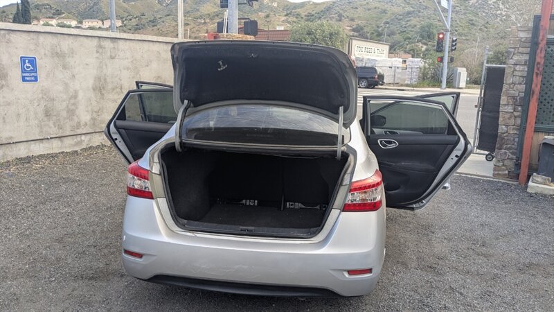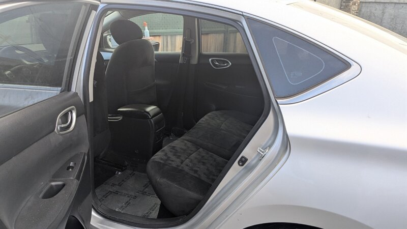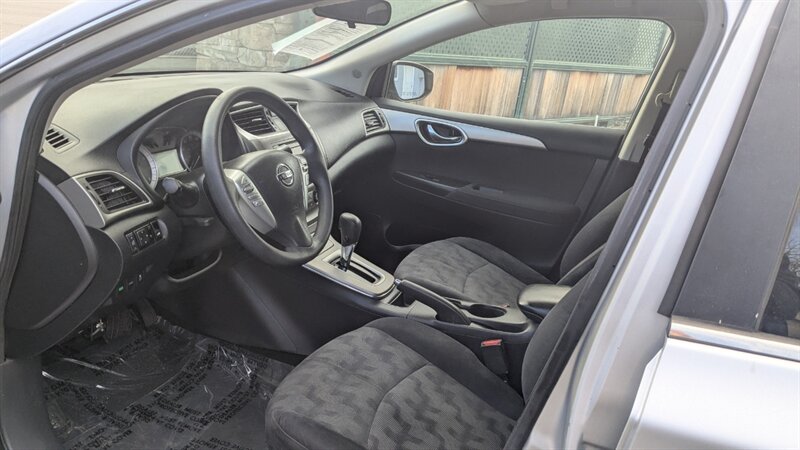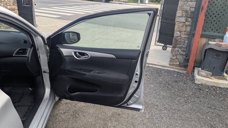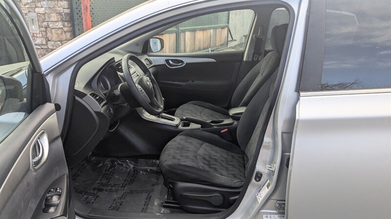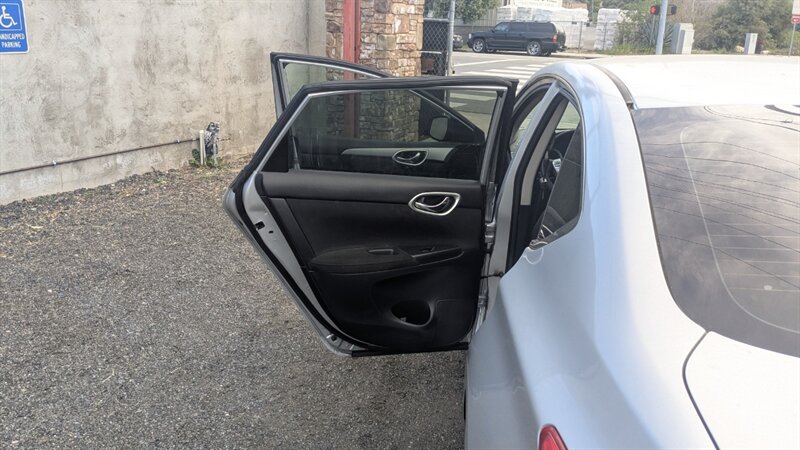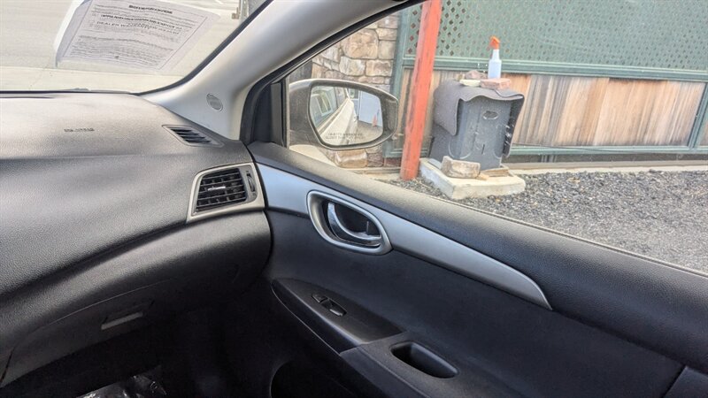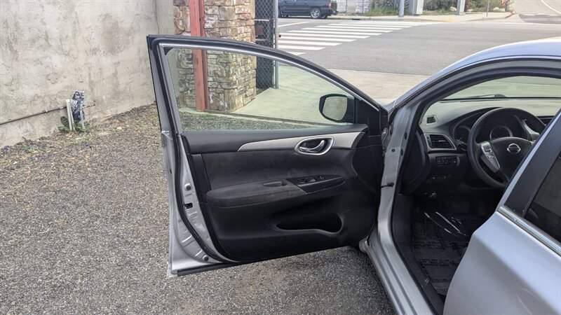 2013 Nissan Sentra S — exterior Black, interior Black. Powered by a 1.8L I4 (130 hp, 128 lb-ft). Factory-standard equipment includes air conditioning, power windows and door locks, remote keyless entry, AM/FM/CD audio with auxiliary input, cloth seats with a 60/40 split-folding rear bench, tilt steering, 15-inch steel wheels with covers, and intermittent wipers. Safety and mechanical features include anti-lock brakes with electronic brake-force distribution, vehicle dynamic control (stability) and traction control, front and side-impact airbags wth roof-mounted curtain airbags, tire pressure monitoring and LATCH child-seat anchors. EPA rating: 27 MPG city / 36 MPG highway. Vehicle is in excellent overall condition.